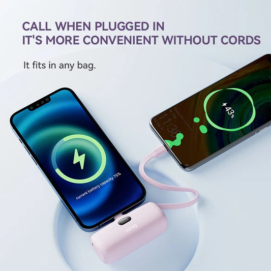 Portable Charger Power Bank,5000Mah Small Portable Phone Charger 5V 3A Fast Charger Built-In Type-C Cable and Phone Holder Cute Battery Pack for Iphone and Android Phone